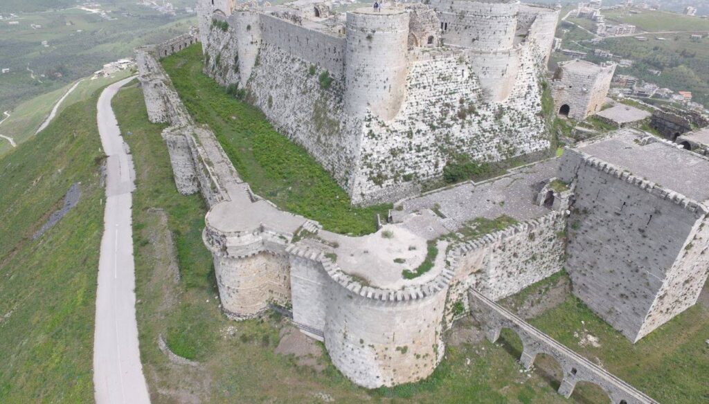 تقع قلعة الحصن، أو «كرَف دو شڤاليه»، على صهوة تلٍ بركاني يهيمن على ممرّ حمص الساحلي، وقد بُنيت أساساتها الأولى على يد فرسان الإسبتارية ابتداءً من سنة 1142 م لتصبح